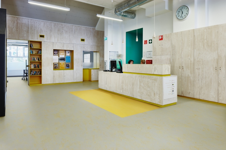 Het pure karakter van linoleum. De strakke look van Marmoleum Walton, met zijn gladde en minimalistische uitstraling en ingetogen materiaalexpressie, maakt hem tot de meest representatieve linoleumvloer.
